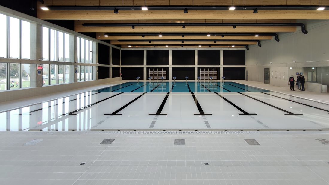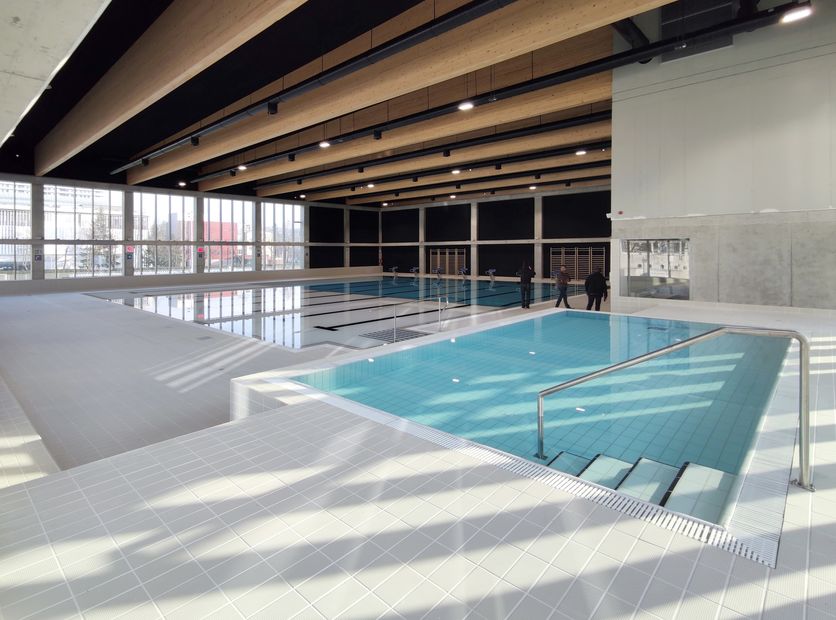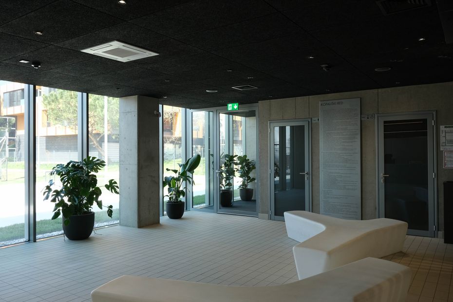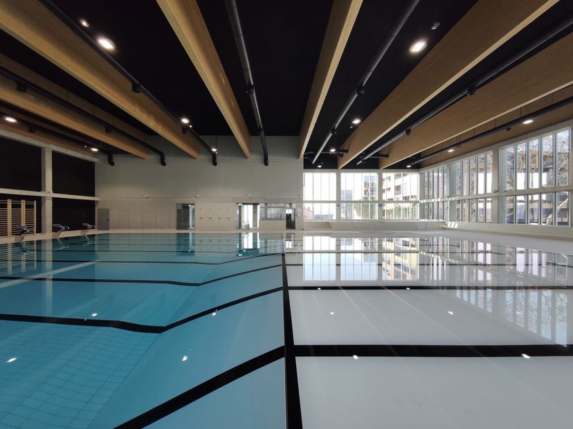 V sklopu projekta je bila izdelana dokumentacija IDZ, DGD, PZI in PID. Paviljonska zgradba zimskega bazena, ki se nahaja v neposredni bližini obstoječega zunanjega olimpijskega bazena, zapolnjuje vrzel v strukturi športnega parka. Na gradbenem zemljišču kvadrataste oblike in površine dveh teniških igrišč je bazen zasnovan kot masiven kubusni volumen, ki kar najbolje izkorišča skromnost razpoložljivega prostora. Bazenska ploščad je dvignjena na nivo prvega nadstropja, kjer se razprostira po celotni površini, velike fasadne zasteklitve pa zagotavljajo dobro naravno osvetlitev globoko v notranjosti prostora in kopališče povezujejo s pogledom na zunanji bazen in igrišče ter okoliške hribe, ki objemajo mesto s severa. V pritličju so pod ploščadjo bazena okoli kompenzacijskih bazenov razporejeni vsi tehnični in servisni prostori ter vhodna avla z garderobnimi in sanitarnimi prostori za obiskovalce.